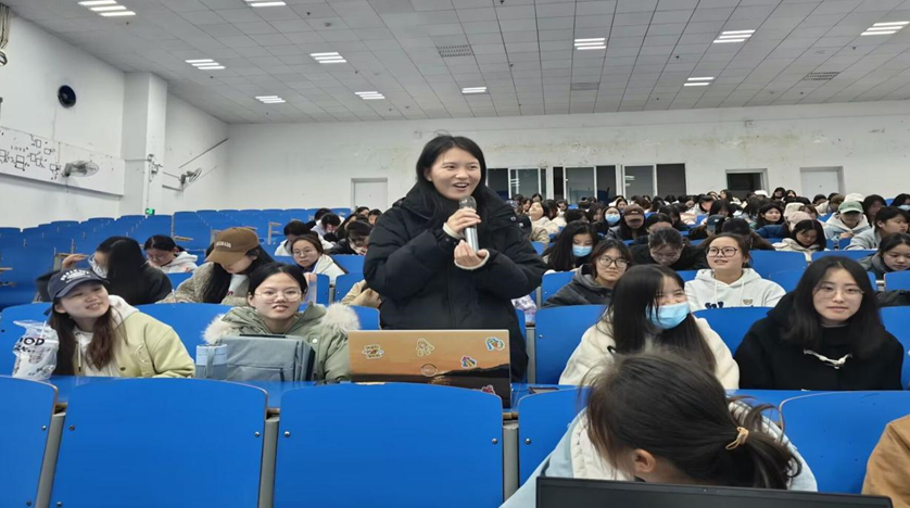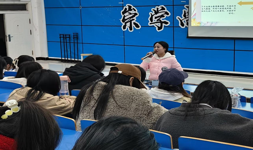 辅导员余雪从安全角度出发,以丰富的真实案例提醒同学们身边可能存在的安全隐患,为女同学讲述了多种保护自我、防患于未然的方法,并着重强调艾滋病的传播及预防方式。