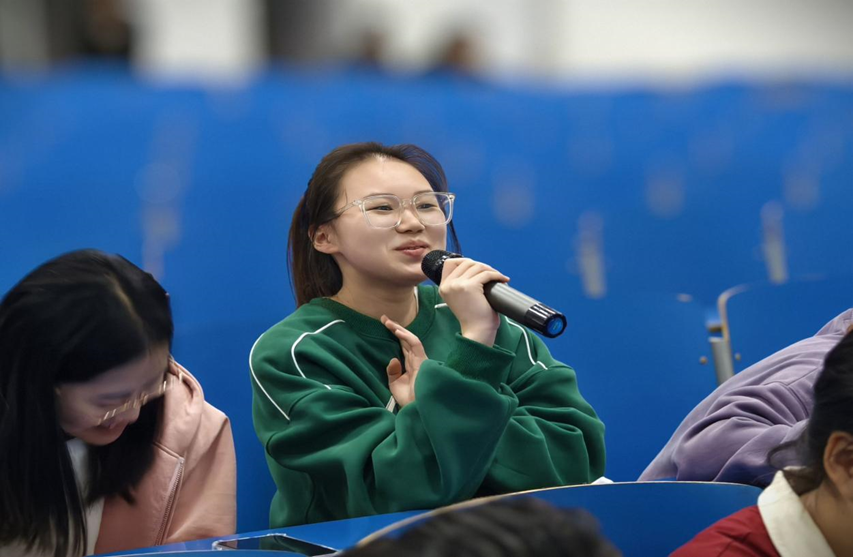 余青云老师以专业视角剖析了当代女性在成长过程中的心理挑战,鼓励每位女生积极塑造自我身份,勇敢追求个人理想,不受外界标签所限,真正做到“不被定义”。余老师不仅提供了丰富的理论知识和实用的心理调适技巧,也跟同学们分享了许多她身边的故事,同时也带动同学们积极进行互动,引导在场女生进行自我思考并展开深入讨论。勇于参与互动的女生,在赢得全场热烈掌声的同时,也收到了学院特别准备的鲜花作为嘉奖,以此象征她们如花般绽放的生命力与独特的个人魅力。
