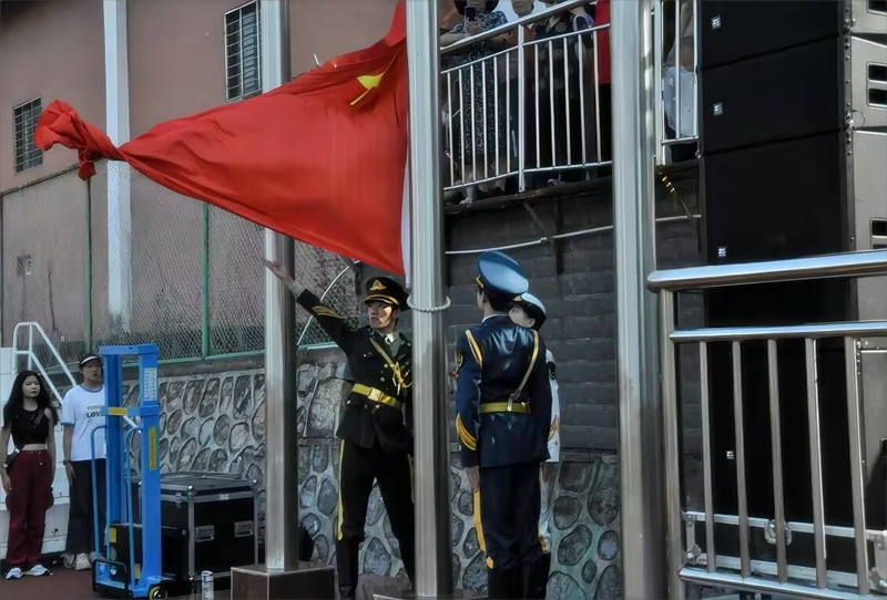 清晨的阳光轻轻洒落,航空学院师生们已经齐聚一堂,排列成整齐的队伍。随着庄严雄壮的国歌奏响,鲜艳的五星红旗在晨曦中缓缓升起,全体师生肃立,向国旗致以崇高的注目礼,现场气氛庄重而肃穆。