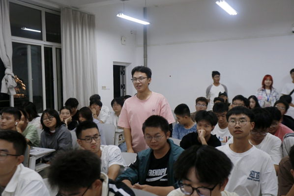 交流会上,学长学姐们以“高中到大学的转变”为主题,分享他们在学习、工作、生活等方面的经验,一一细致解答新生普遍关心的问题,以帮助新生更快地适应大学生活。汪圆学长特别强调了专业课的重要性,并鼓励同学们积极参与各类学科竞赛。在互助问答环节,新生踊跃提问,老生耐心解答,现场洋溢着轻松愉悦的氛围,交流会在一片欢声笑语中圆满结束。