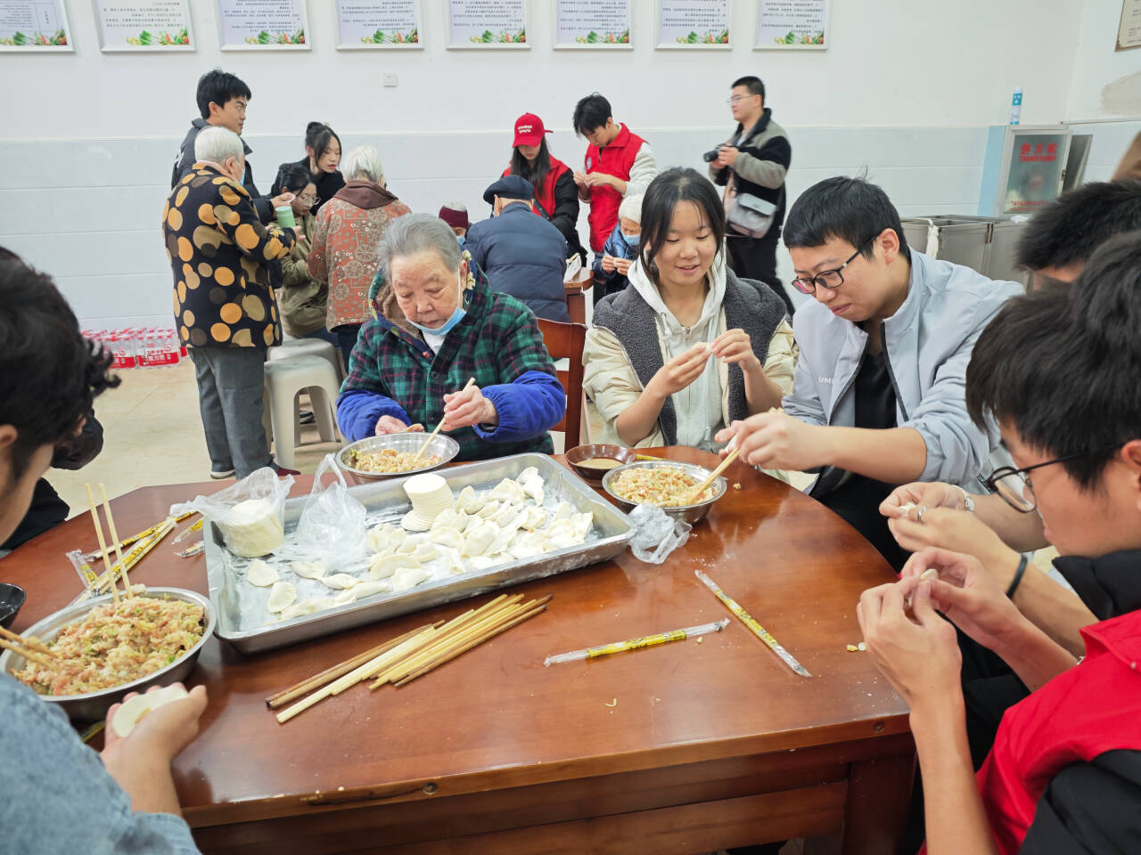 活动当天,志愿者们早早地来到福利院,布置活动场地、准备食材,各项工作井井有序。在温馨和谐的氛围中,他们与老人们围坐一起包饺子,亲切交谈,了解老人们的生活和健康状况。少数民族志愿者介绍了各自民族和地区对饺子的不同叫法和馅料区别,聊到各自的传统节日,现场充满了欢声笑语。当一盘盘热气腾腾的饺子端上桌时,志愿者们亲手将这份心意送到每位老人的手中,为寒冷的冬日带来了温暖和活力。