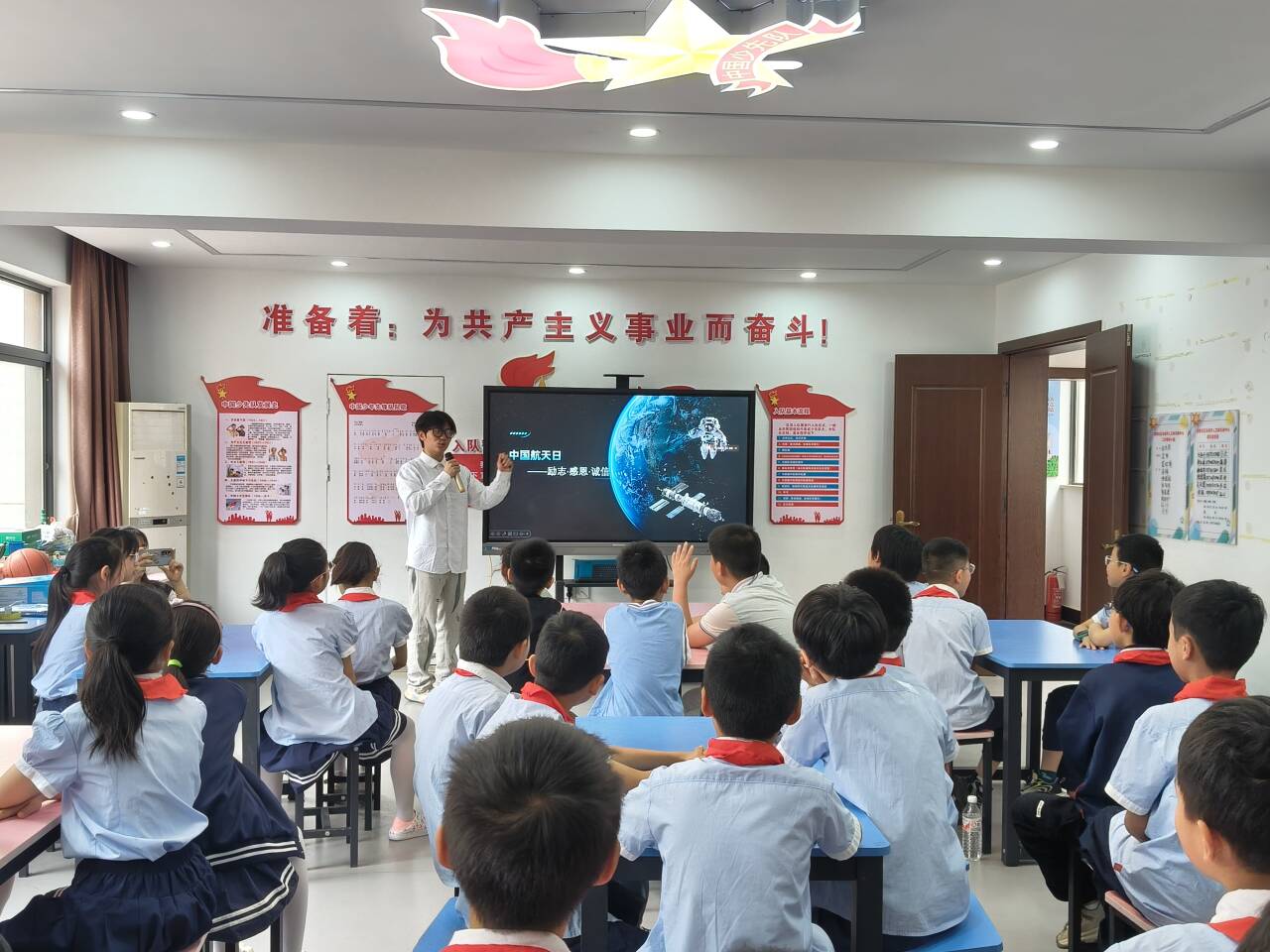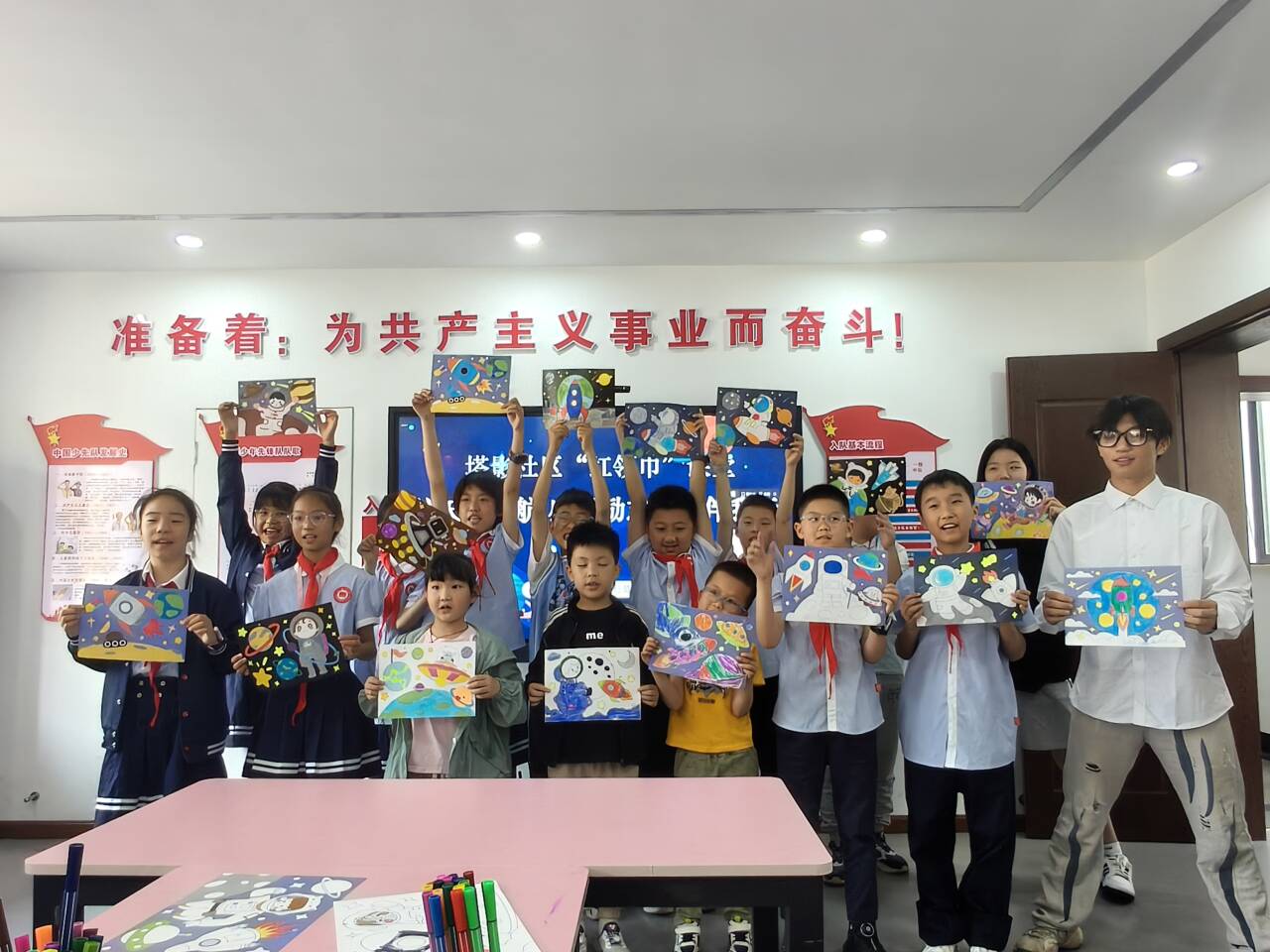 qy球友会学生余同立运用多媒体课件,以生动鲜活的图文,为孩子们讲述中国航天从“东方红一号”发射升空到空间站建成的壮丽征程。讲解中穿插精心设计的趣味问答,瞬间点燃现场气氛,孩子们纷纷举手抢答,讨论声此起彼伏。随后的绘画环节,小朋友们手握画笔,在画纸上大胆描绘心中的航天图景,将对神秘宇宙的无限憧憬化作斑斓色彩。