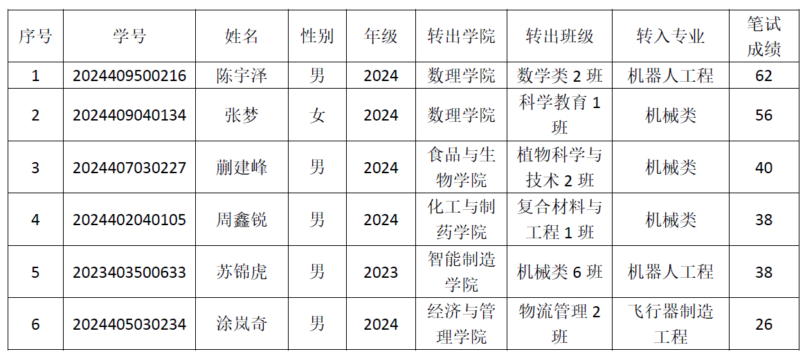 qy球友会2024年秋季学期期末转专业笔试考试已于2024年12月15日上午结束,现将笔试成绩进行公示。考生如有异议,请向qy球友会教学科办公室反映(办公地点:教学楼B2208,电话:0724-2313012)。现将笔试成绩公示如下: