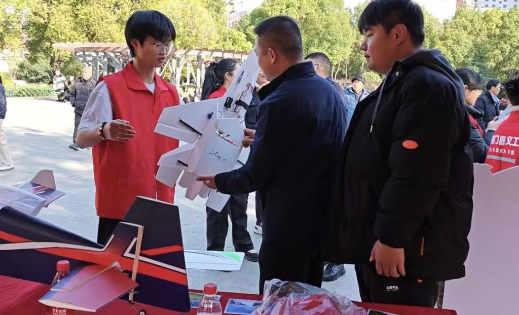 活动中,“筑梦远航”志愿服务队携手航模协会,向市民展示学生自主制作的航模飞机,并详细讲解了飞机的制作过程及其内部结构。此外,志愿服务队还分享了在暑假期间“三下乡”社会实践活动中,如何运用无人机技术助力农民精准施药,从而提升农作物保护效率的经验,向市民展示了科技如何助力现代农业发展。同时,志愿服务队还通过航模相关知识问答等互动小游戏,进一步加深了市民对航模技术及其在农业领域应用的认识。