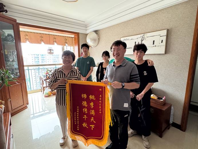慰问中,教师代表转达了学院对王霞老师的感谢与敬意,学生代表献上锦旗,深情致谢师恩。王霞老师动情分享育人故事,强调“因材施教”是她的教育信条:“每个学生都有独特的光,教师要做的便是发现并点亮它。”她以自身经历勉励学生代表:“有目标、有计划,再辅以不懈努力,梦想终会实现。”质朴的话语传递出深刻的教育智慧,令在场师生深受触动。