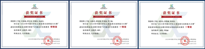 近日,2025年中国大学生工程实践与创新能力大赛国赛获奖名单公布,qy球友会团队获特等奖1项,一等奖2项。其中飞行器设计仿真赛项获特等奖1项,一等奖1项;太阳能电动车赛项获一等奖1项。