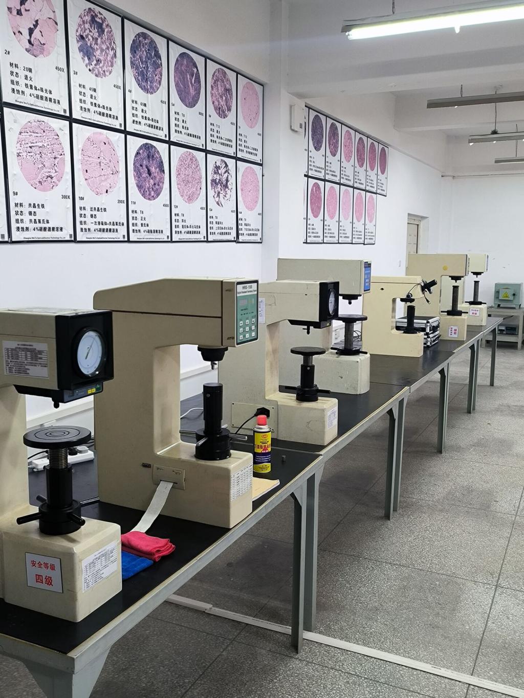 实验中心包括金相准备、金相分析、机械性能、热处理实验室,总面积约240平方米,开设有金相试样制备、铁碳合金显微组织观察分析、材料硬度检测、材料拉压扭弯性能测试实验、材料热处理实验。