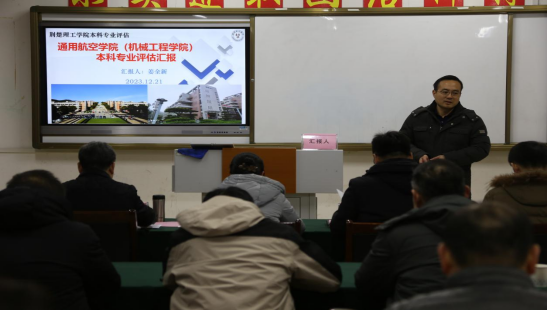 学院院长姜全新向专家组介绍了学院概况,从专业定位、培养过程、数字资源、师资队伍、质量保证、培养效果等方面,对机械设计制造及其自动化、材料成型及控制工程、飞行器制造工程三个本科专业的专业办学情况及特色与优势进行了汇报。