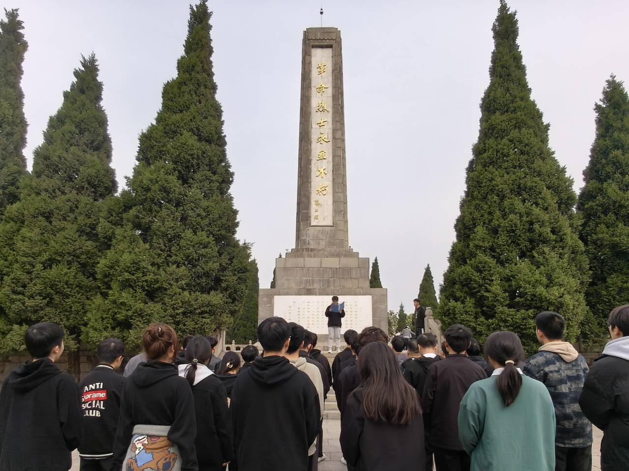 松柏苍翠间,师生肃立于纪念碑前,齐唱国歌致敬英烈。默哀时,大家垂首捧菊,缅怀革命先辈。学院分团委书记王明凯老师在致辞中指出,红色精神是照亮青年成长道路的明灯,是激励我们砥砺前行的精神动力。他号召全体师生要以革命先烈为榜样,让红色基因融入血脉,化作奋进新时代的磅礴力量。
