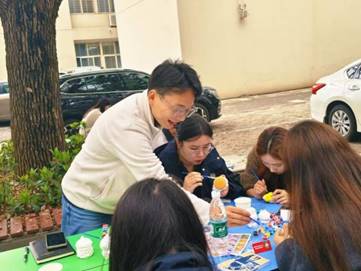 现场气氛温馨而热烈。同学们积极参与,纷纷拿起画笔,或细心为石膏娃娃上色、唤醒娃娃灵魂,清空负面情绪;或在明信片上绘制图案、书写暖心寄语,传递温暖心意。学院辅导员们也主动加入创作行列,与同学们一同动手、亲切交流,在互动中拉近了师生距离,为活动增添了更多温情。