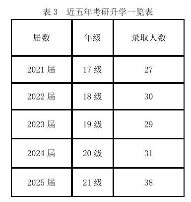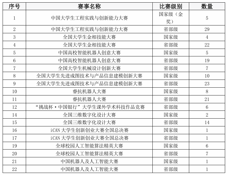 学院注重提升人才培养质量,践行“勤奋、严谨、求实、创新”的院训,注重培养思想政治素质好、理论基础扎实、外语和计算机过硬、有较强工程实践能力、有一定创新意识、开拓能力和协作精神的全面人才。学院学风良好,建有2个学生社团(航模协会和机器人创新协会),为学生提供了丰富多彩的第二课堂活动平台,鼓励和支持学生参加各级各类学科竞赛,培养学生的实践创新能力。2021年,参赛队以全国总决赛第一名荣获第七届中国大学生工程实践与创新能力大赛(飞行器设计仿真赛项体系类)金奖,2023年再获金奖2项,2025年持续突破获国家级特等奖1项,国家级一等奖2项。近三年学生参加学科竞赛获省部级以上奖励190余项,位居学校前列,见表2。学院积极引导和鼓励学生报考硕士研究生,近年来考研人数居学校前列,见表3。